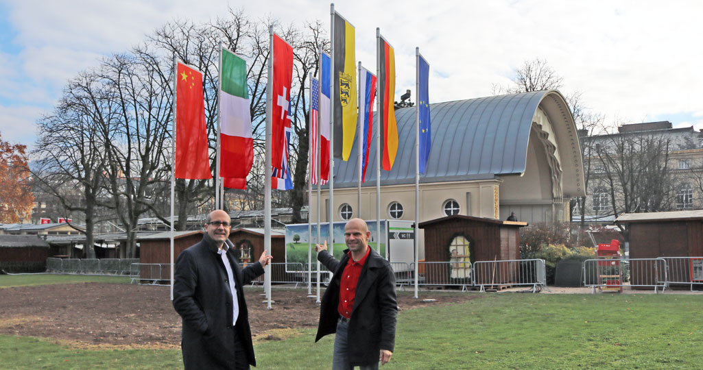 Im Zuge der Neugestaltung haben wir auch die Standard-Hängung der Länderflaggen überarbeitet: in der ersten Reihe hängen Land, Bund und Europa. Die weiteren Länderflaggen entsprechen den neun Ländern mit den meisten Übernachtungen in Baden-Baden.